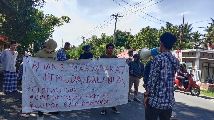 Polman, Komunika Nusantara. Aliansi Pemuda Balanipa Bergerak menggelar aksi di jalan Trasn Provinsi tepatnya jalan menuju ke Puskesmas balanipa mereka menuntut Kepala Puskesmas Dicopot.
