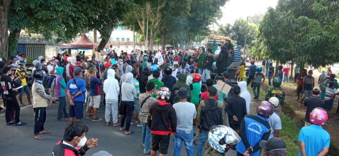 Aksi yang berlangsung kemarin berlangsung di dua titik yakni didepan gedung DPRD dan dilanjutkan ke Kantor Bupati, sesuai pantauan di lapangan massa diperkirakan berjumlah 500 san dan sempat menduduki Kantor Bupati Polman. ( BRI)