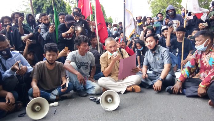 Suaib Korlap aksi dalam orasinya meminta kepada pihak DPRD polman untuk membuat pertnyataan sikap terkait penolakan UU Omnibuslaw, sikap penolakan harus secara kelembagaan DPRD dan dituangkan dalam berita acara.