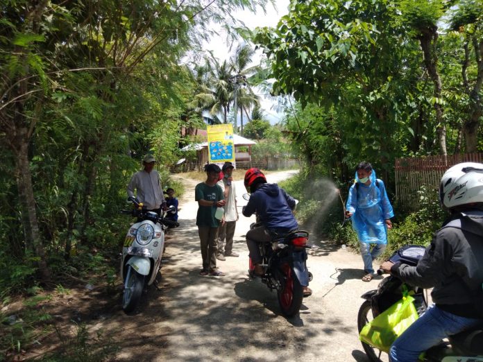 Pada saat di wawancara’ Keduanya menjelaskan bahwa tujuan penyemprotan ini adalah kita mengantisipasi penyebaran virus. Sebab virus ini, tidak mengenal lokasi mau dikota mau diDesa semua bisa di kena. Jadi kita takut jangan sampai ada warga yang baru pulang dari luar kota yang luput dari pemeriksaan membawa virus ini, Tapi Mudah-mudahan tidak ada ,Lebih baik kita antisimasi memang/Kata Azis dan Yusran.