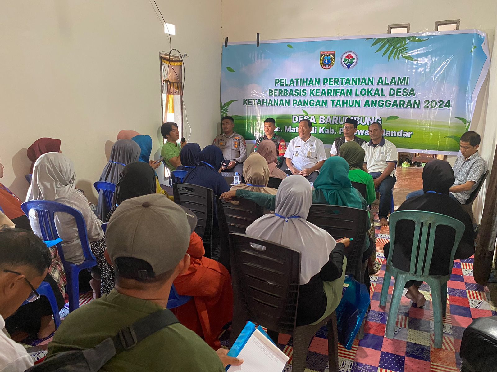 Polewali Mandar – Dalam rangka mendukung ketahanan pangan T.A 2024, Bhabinkamtibmas desa Barumbung Brigpol Irfan Taufik menghadiri pelatihan pertanian alami berbasis kearifan lokal yang diadakan di rumah Kepala Desa Barumbung Kec. Matakali Kab. Polman. Rabu (06/11/24)