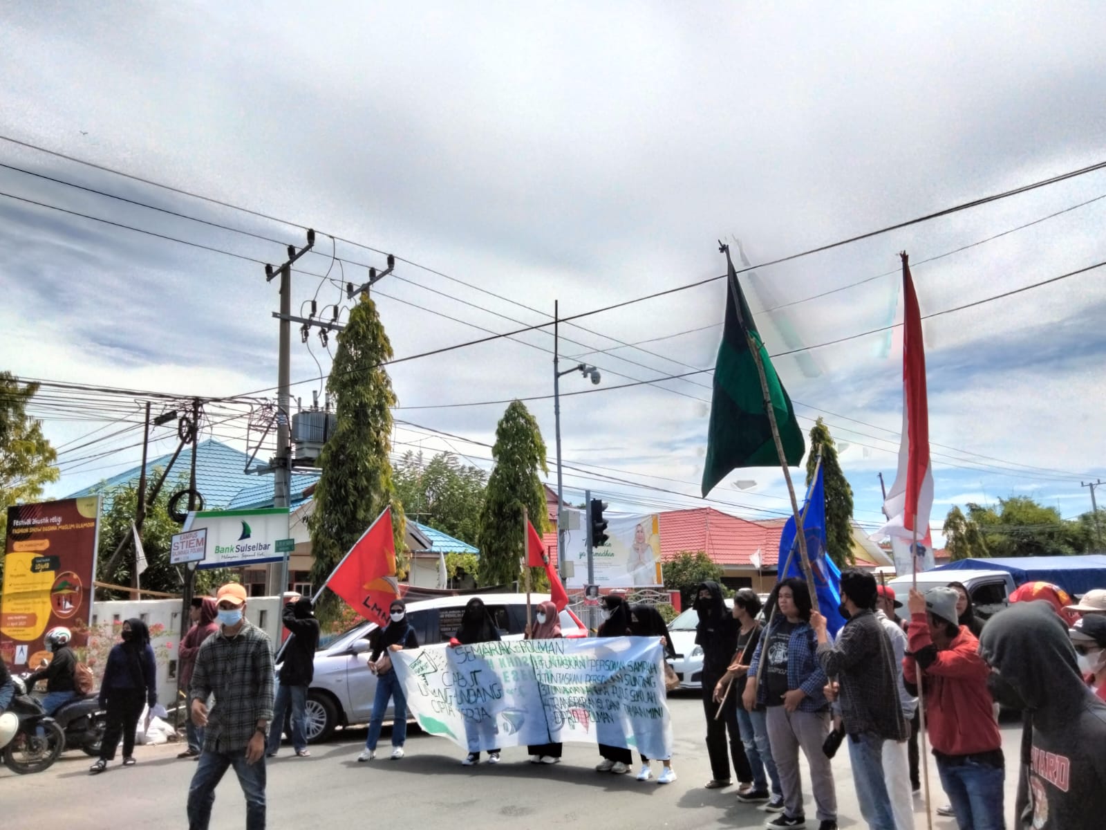 Lalu kemudian massa aksi melanjutkan ke titik aksi selanjutnya yakni lampu merah Pekkabata dan kemudian massa aksi melakukan long mars ke Kantor DPRD POLEWALI MANDAR.