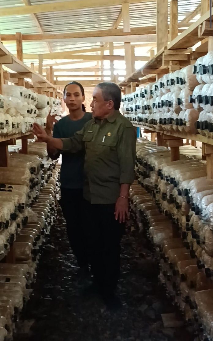 KaDistapan Sulbar Abdul Waris Bestari mengunjungi langsung proses budidaya jamur tiram polman di Desa Kuajang Kecamatan Binuang, Kabupaten Polman, Kamis (7/9/2023).