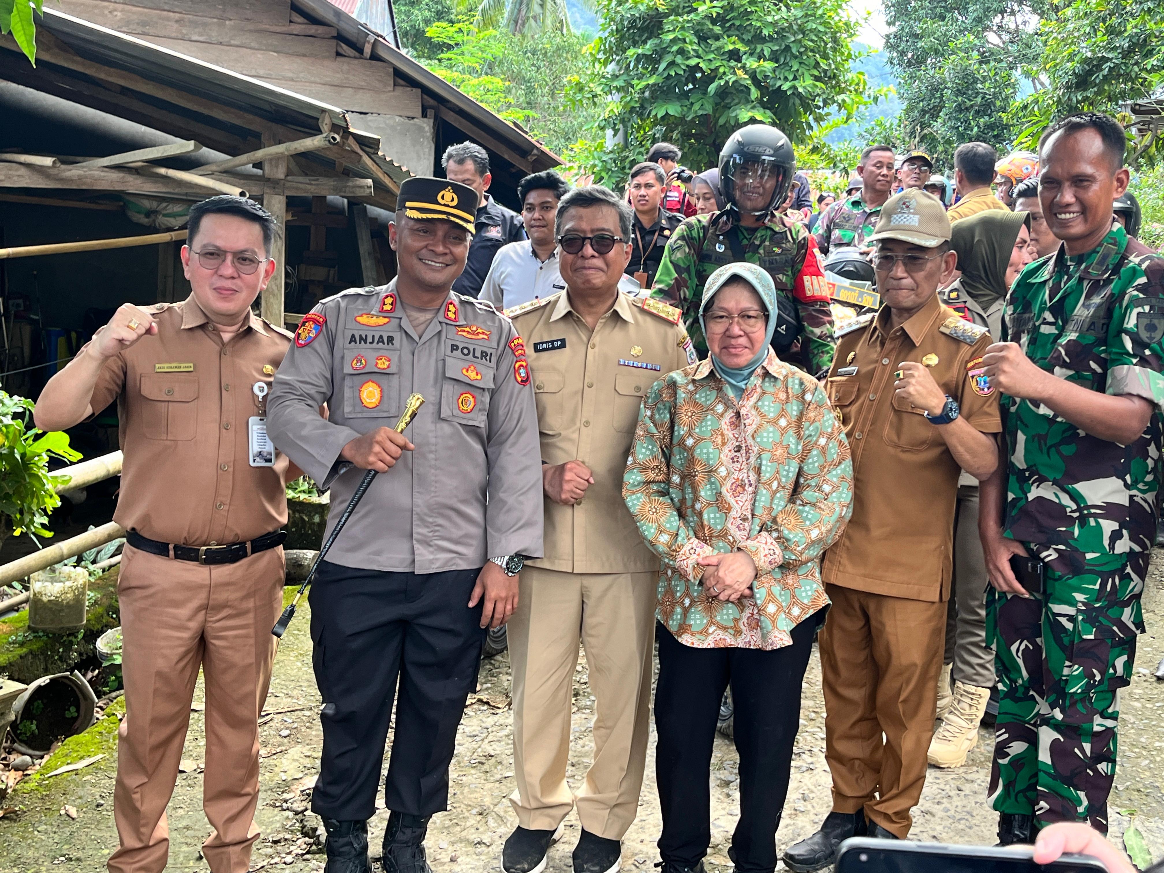 Menteri sosial RI Dr. Ir. HJ. Rismaharini, M.R beserta rombongan mengunjungi rumah tempat tinggal (Rumah Kebun) Marni serta menyerahkan 1 (satu) unit rumah yang dibeli dari pemilik Ali oleh Kementrian Sosial RI.