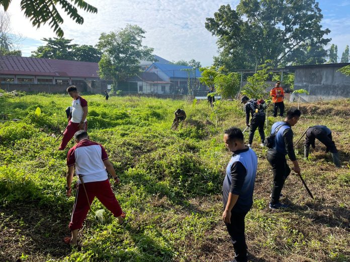 Polewali Mandar — Polsek wonomulyo laksanakan kegiatan pembukaan lahan tidur serta bercocok tanam terkait dengan 100 hari kerja presiden tentang swasembada pangan di halaman belakang mako Polsek Wonomulyo Kec.Wonomulyo Kab. Polman. Selasa (05/11/24)