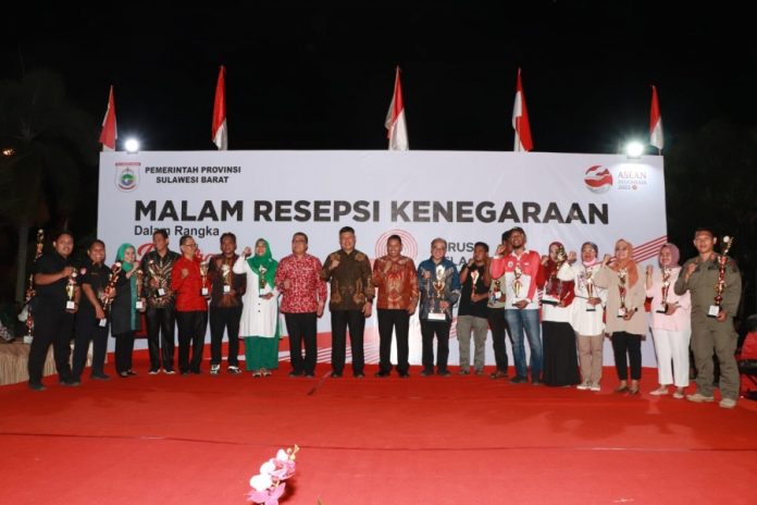 MAMUJU, Komunika Nusantara–Pj. Gubernur Sulbar, Prof. Zudan Arif Fakrulloh bersama jajaran OPD Pemprov Sulbar, Forkopimda, Paskibraka dan masyarakat menggelar Malam Resepsi Kenegaraan dalam rangka Dirgahayu Republik Indonesia Ke-78 Tahun di Pelataran Rujab Gubernur Sulbar, Kamis 17 Agustus 2023 malam.