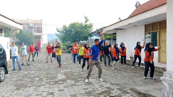 “Senam bersama di awal kepemimpinan ini kami laksanakan untuk menciptakan dan membangun sinergitas dengan seluruh bawahan, sehingga kolaborasi dalam pelaksanaan program dan pelayanan kepada masyarakat dapat berjalan dengan baik,” ujarnya.