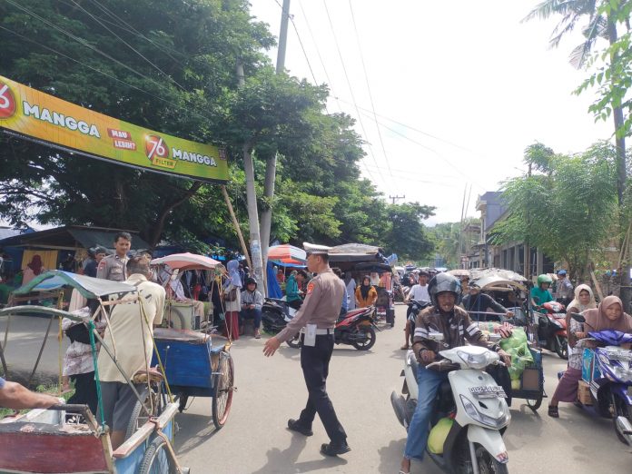 Polman, Komunika Nusantara_ Polsek Tinambung Iptu Haspar Pimpin Pengamanan Kunjungan Kerja Pj Gubernur Sulawesi Barat Dr. Bahtiar Baharuddin, M.Si. Di Pasar Tinambung Lingk.Kandeapi Kel.Tinambung Kec.Tinambung Kab.Polman. Sabtu (15/06/24)