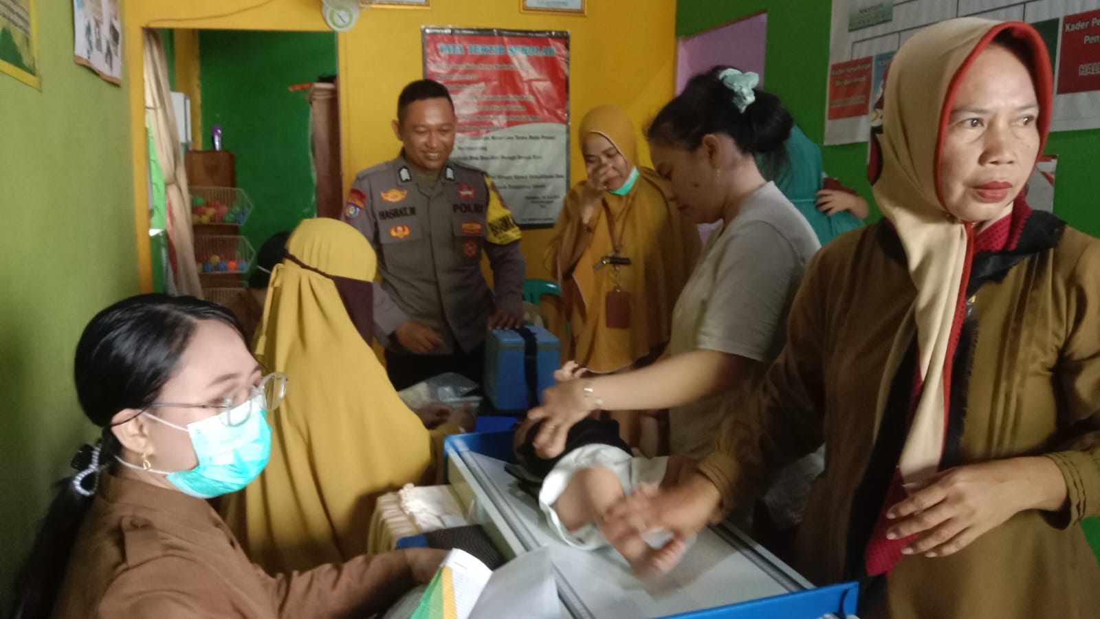 Kapolsek Polewali Akp Frans Geradus Wonomulyo melalui Bhabinkantibmas Kelurahan Pekkabata Bripka Hasrat mengatakan kegiatan posyandu hari ini melaksanakan pengukuran tinggi badan, penimbangan berat badan serta imunisasi pada bayi maupun balita.